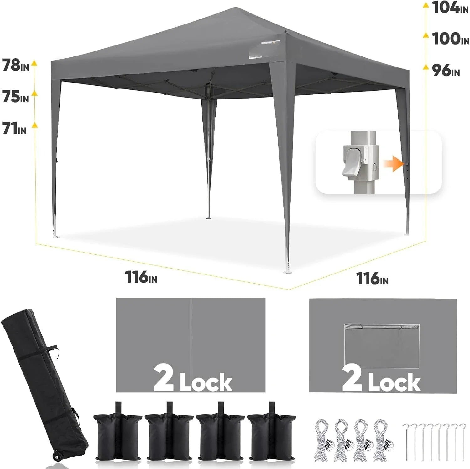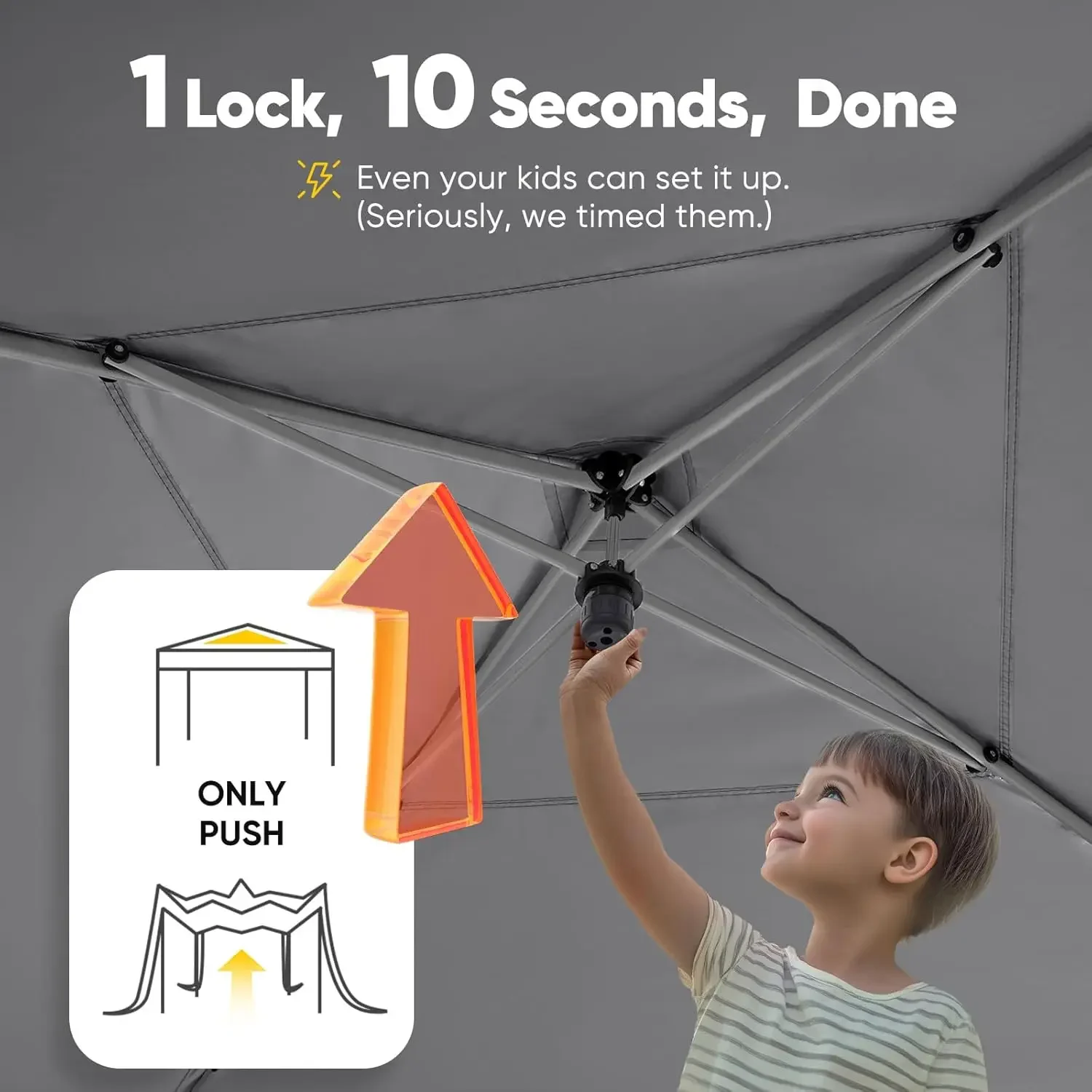 0x10 Pop up Canopy Tent with Sidewalls and Roll-up Ventilated Windows, One Person Setup, Easy Outdoor Commercial Gazebo