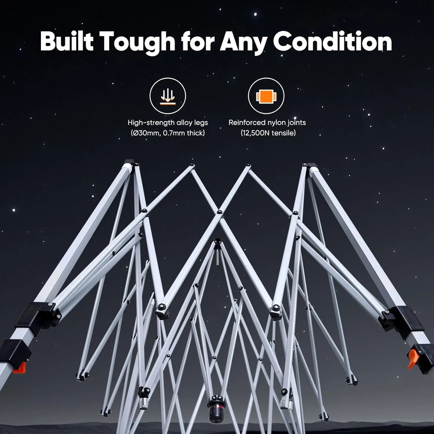 WATER RESISTANT & SUN PROTECTION: The pop up canopy tent sidewalls and canopy top are made with high-quality 420D Oxford fabric and premium UV coating. This 10x10 canopy tent with sidewalls is waterproof and blocks out 99% of harmful UV rays with a standard UPF 50+. The durable fabric ensures your comfort by shielding you from direct sunlight.