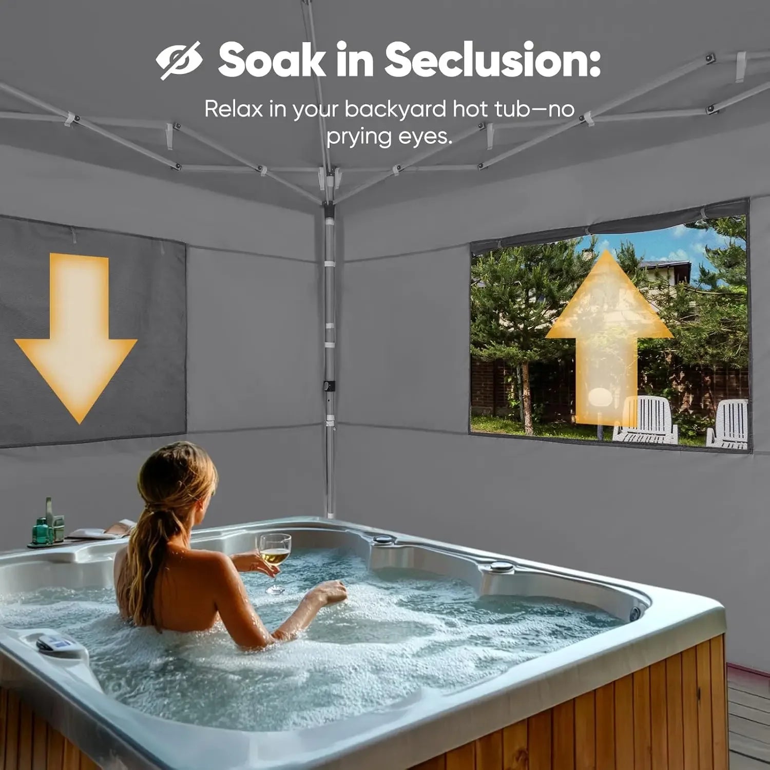 BREATHABLE & VISIBLE WINDOW: This 10x10 pop up canopy features mesh windows, which let fresh air and light in as well as provide essential protection from mosquitoes. The canopy tent with sidewalls has a window cover, which can be rolled up and down for ventilation or privacy.