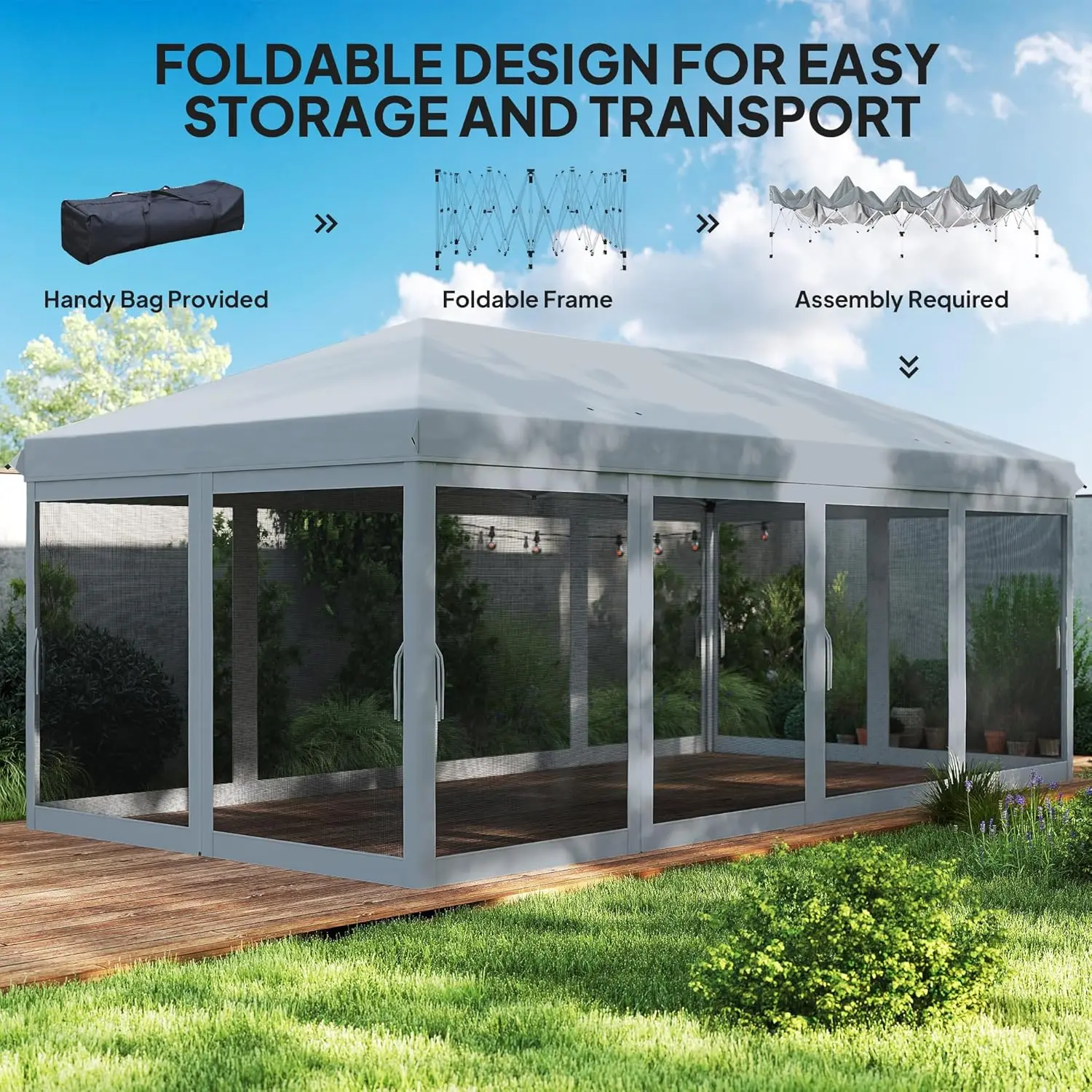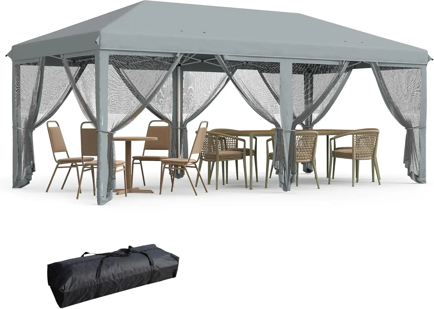 10' x 20' Pop Up Canopy Tent with Netting, Heavy Duty Instant Sun Shelter, Large Tents for Parties with Carry Bag for Outdoor, Garden, Patio, Gray