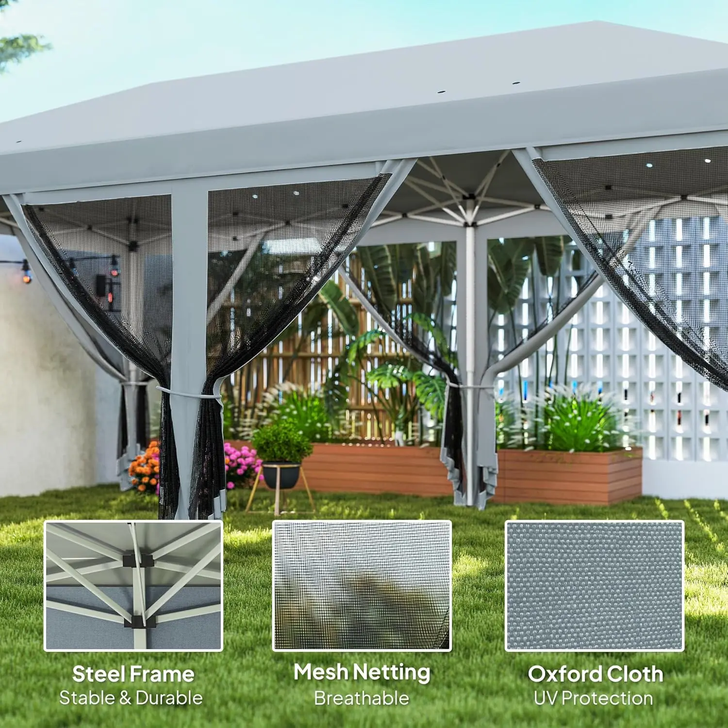 - Outdoor Outings that Don't Bite: Let the good in, keep the bad out. This instant canopy protect your sitting space from unwanted winged guests without it getting muggy using mesh netting side walls. (6 mesh netting side walls included).
