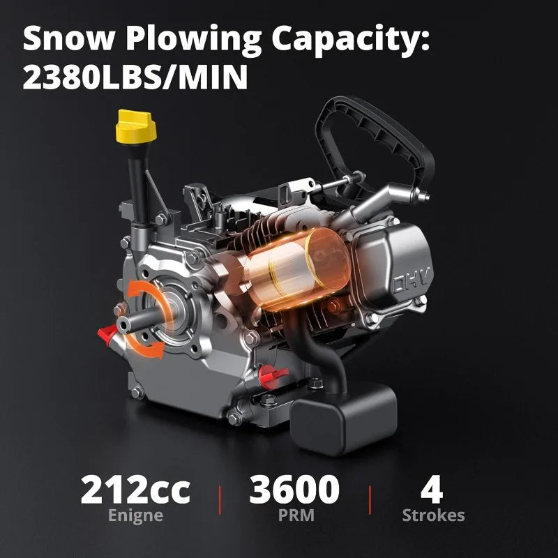 7HP OHV 212cc Engine: Powered by a 7-horsepower, 212cc OHV (Overhead Valve) engine, this snow blower delivers strong performance and reliability, even in heavy snow conditions.