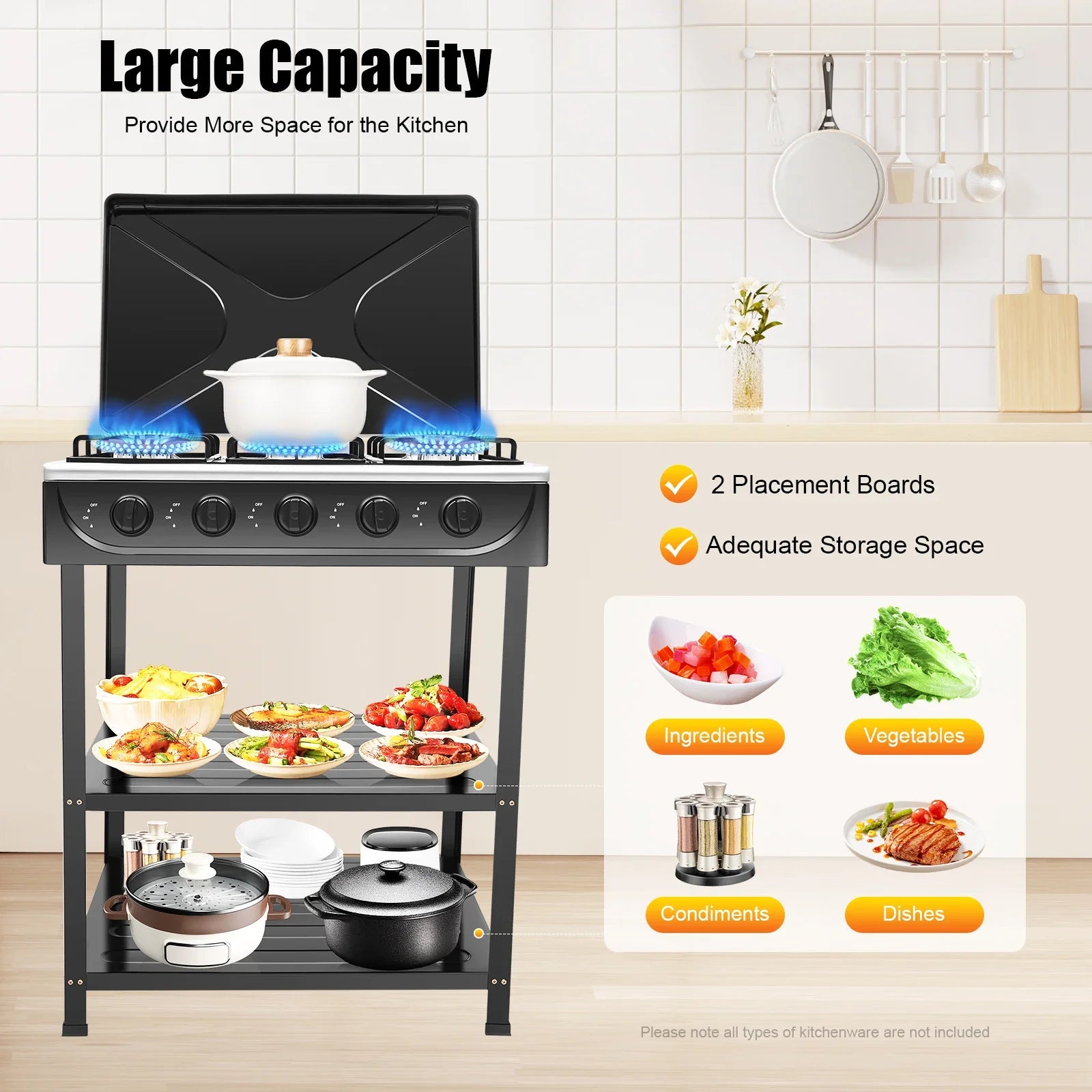 5-Burner Gas Stove Outdoor Camping Cooking BBQ Grill With 2-Tier Storage Rack
