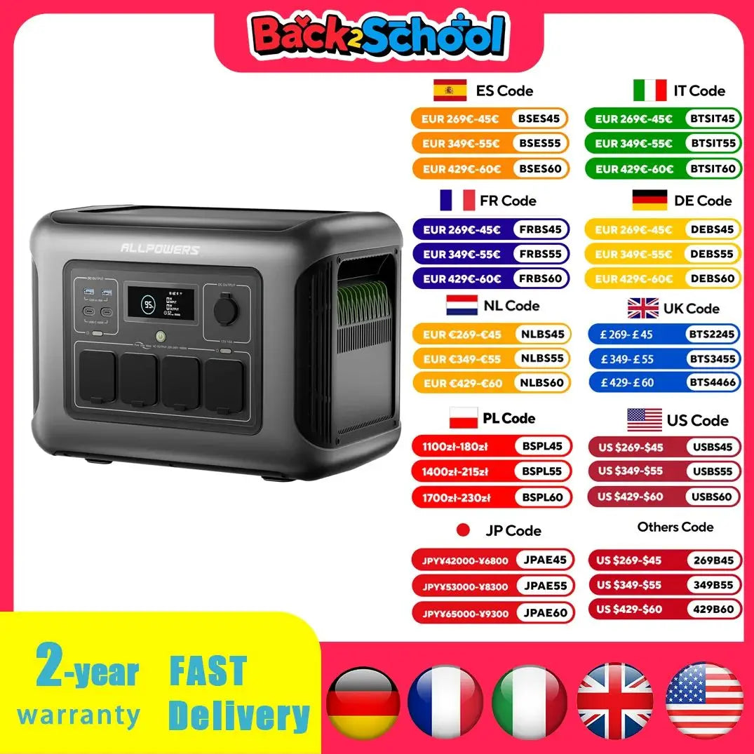 ALLPOWERS R1500 LITE Portable Power Station 1056Wh LiFePO4 Battery 1600W (3200W peak) AC Output Solar Generator for Camping RV