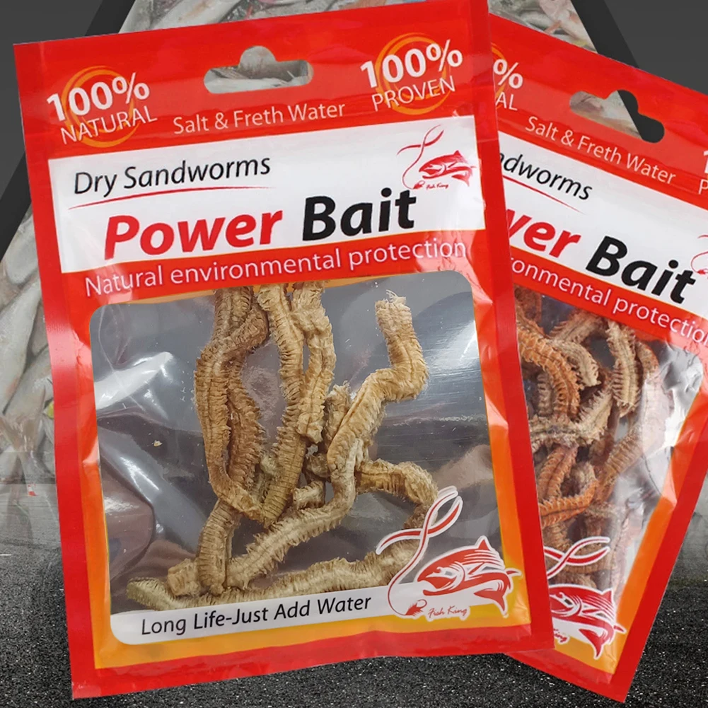 1. Effective Fish Attraction: These dry sandworms fishing lures excel at attracting large fish to bite. Their unique design and features make them highly effective in enticing fish to strike, increasing the chances of a successful catch. 2. Ideal for Sea Fishing: These artificial baits are specifically designed for sea fishing, making them well-suited for anglers who prefer fishing in marine environments. Their features and characteristics are tailored to attract fish species commonly found in saltwater. 3. Natural Hormone and Enzyme Scent: The lifelike dry lugworm sandworms possess a natural dispersion of hormones and enzymes that emit an enticing scent to fish within a reasonable distance. This scent acts as a natural attractant, drawing fish towards the lure. 4. Soft and Irresistible: When soaked in water or scented oil for approximately five minutes, these artificial sea worms become soft and pliable. This enhanced texture adds to their allure, making them highly attractive to both freshwater and saltwater fish species. 5. Popular among Fishing Enthusiasts: Fishing enthusiasts widely appreciate these fishy smell lures for their exceptional performance and reliability. They have gained a strong following among avid anglers who trust their effectiveness in various fishing scenarios.
