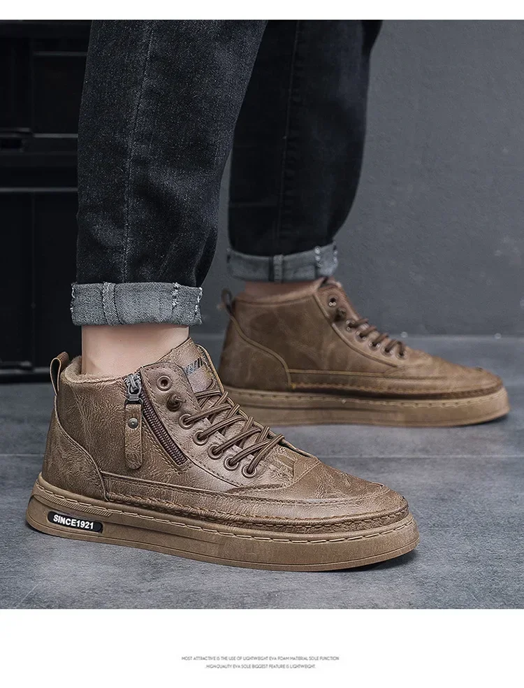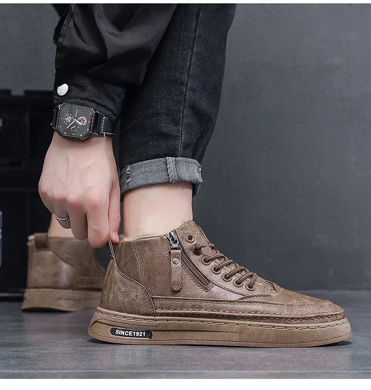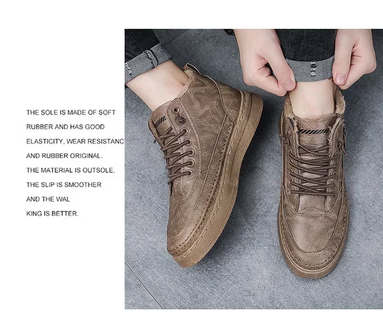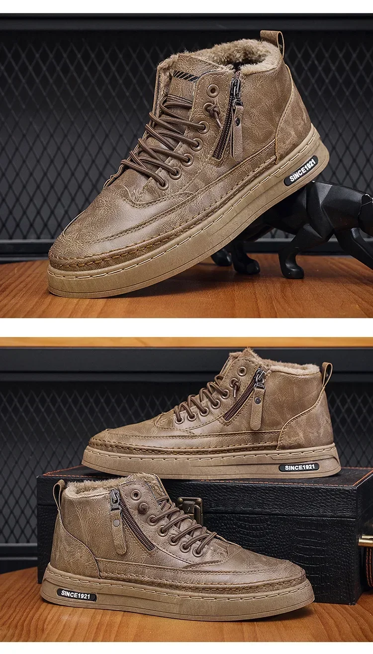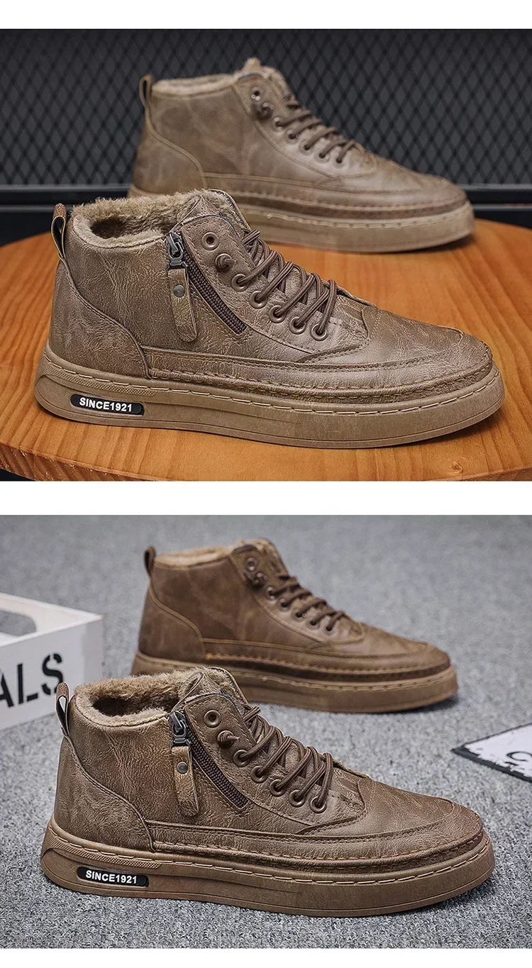Men's Winter Warm Cotton Shoes 2024 New Classic Fashion Retro Plush Comfortable Anti Slip Snow Boots Outdoor Sports Casual Shoes