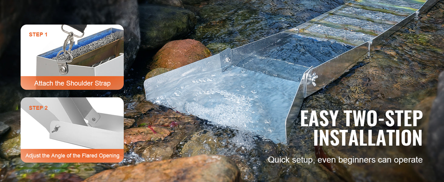 Easy Assembly: Our gold prospecting kit has a straightforward assembly process. With built-in folding structures and pre-installed miner's moss, you can complete the installation in just a few minutes without hassle. Even if you're a novice prospector, it's effortless to get started.