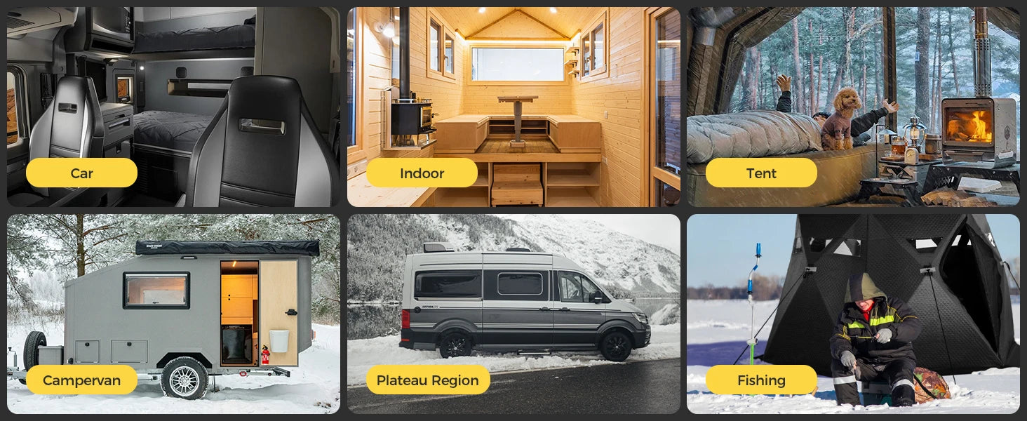 (6)Low Consumption and Quiet Operation:About 1 gallon of fuel per night, heating up to 20 ㎡, noise ≤35 dB.
