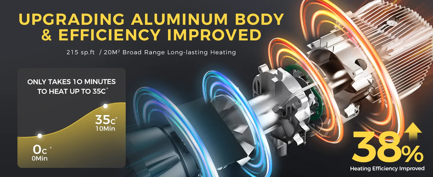 Fast heating :Within 10 minutes, you can be quickly placed in a warm environment,heat to warm up 215-269 ft²/20-25 m²